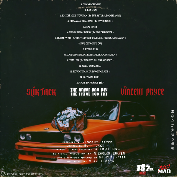 Montreal’s underground heavyweight duo Slik Jack and Vincent Pryce, along with 100Mad & 187er Records, present ‘The Pryce You Pay.’ The 15-track project serves as the follow-up to their deadly collab ‘Everyone’s Gotta Pryce,’ which took the boom-bap realm by storm.