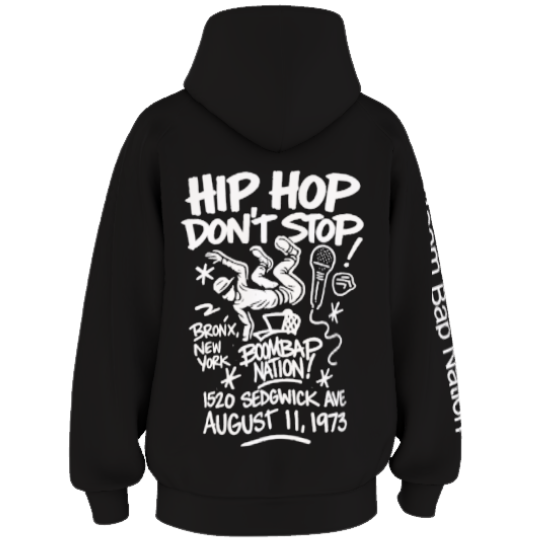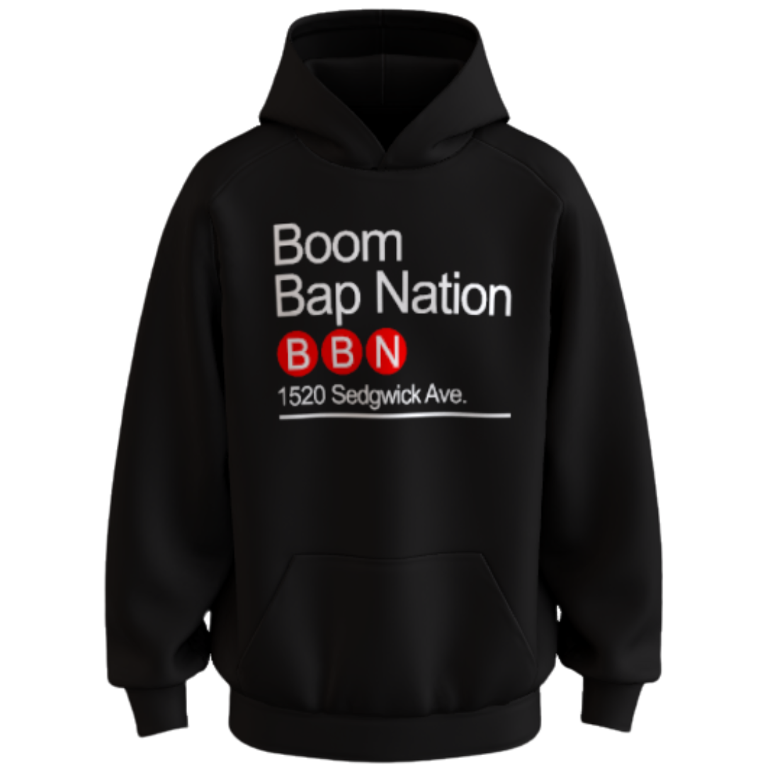 Boom Bap Nation hoodie with 3 bold prints – perfect for concerts, streetwear, and the ultimate hip hop gift. Rep the culture in style.